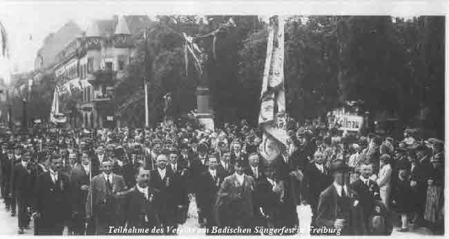 Der erste Weltkrieg, der dieses großartige Vereinsleben jäh unterbrach, forderte von dem Verein Tribut. Fast alle Mitglieder mußten in den Krieg ziehen, 17 der Eingezogenen kamen nicht mehr lebend zurück. Bald nach Beendigung des Krieges und der Heimkehr der aktiven Sänger wurde die Vereinstätigkeit wieder aufgenommen, so daß der Verein bald wieder in der Lage war, bei Großveranstaltungen mitzuwirken - hier sei nur das Badische Sängerrest im Jahre 1929 in Freiburg erwähnt.